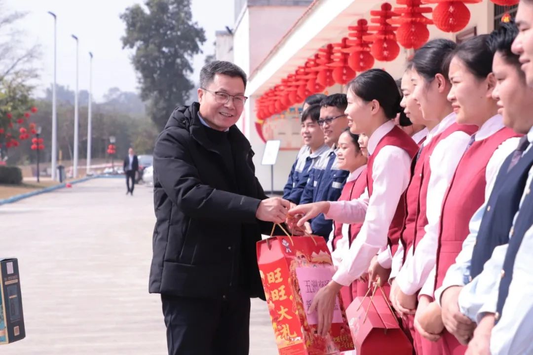 周异助、黄英强率队深入坛百、岑罗公司各收费站、服务区进行慰问调研,详细了解一线员工工作生活情况,向一线员工送上新春祝福,感谢他们一直以来坚守岗位、尽职尽责为五洲交通发展作出的积极贡献。