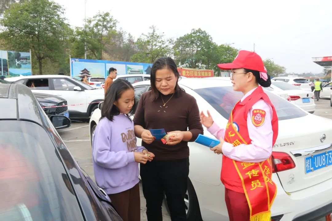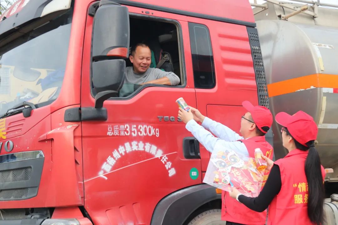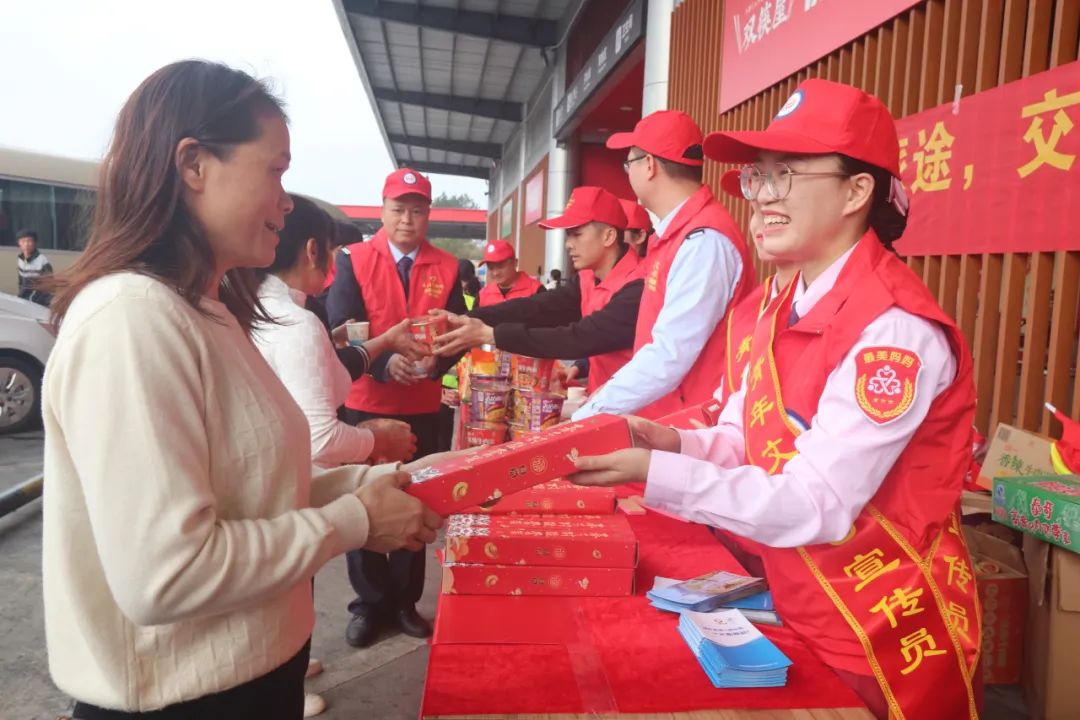 活动现场设立了“情满旅途”志愿服务站,为过往司乘提供引导宣传、爱心慰问、迎春送福等暖心服务,共赠送了春联、福字礼包200余份,姜糖水350余杯,糖果饼干、方便面、八宝粥等食品500余份,发放安全宣传手册300余份,服务司乘1000余人次。