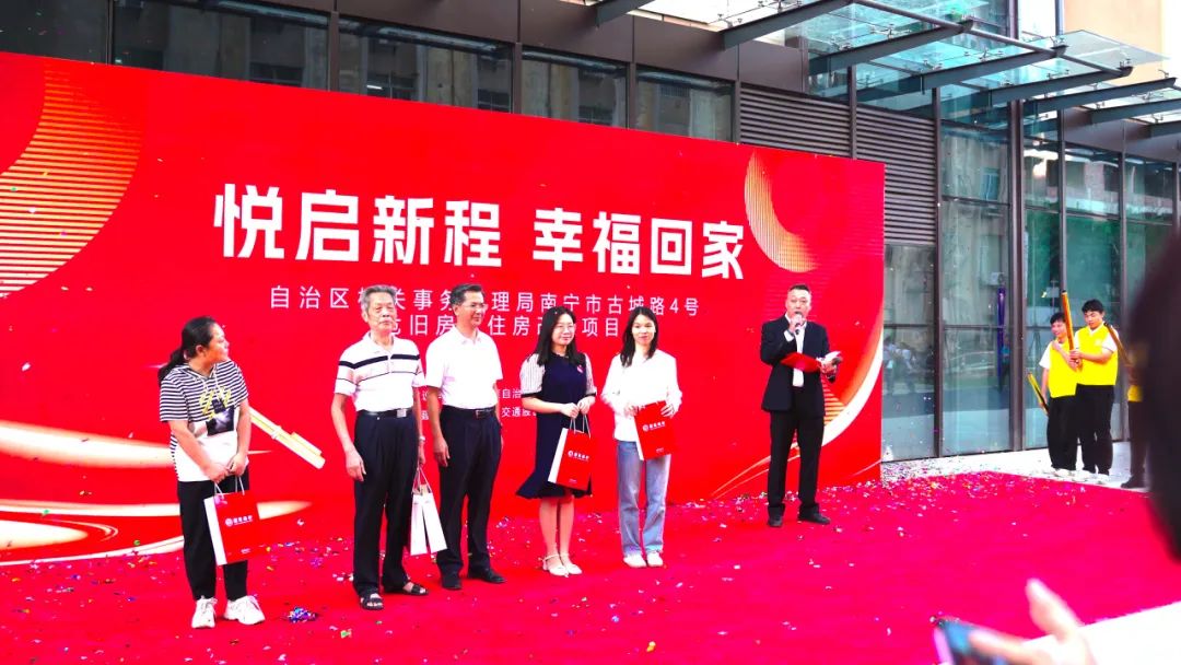 10月23日上午,由广西五洲交通股份有限公司代建的南宁市古城路4号大板一区危旧改项目正式建成交付,交房仪式在小区现场举行。自治区机关事务管理局、五洲交通等单位相关人员以及大板一区部分业主代表参加了交房仪式。