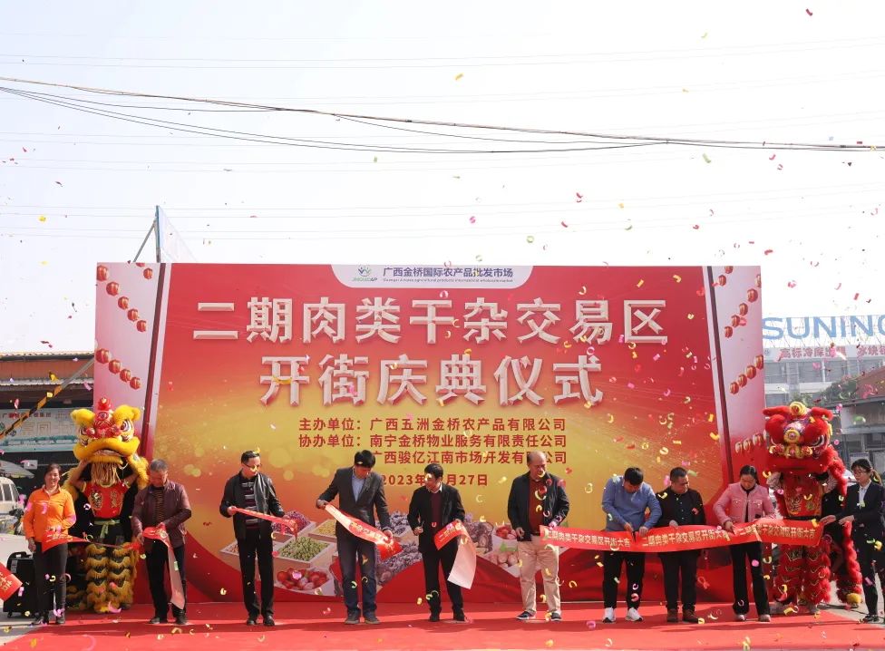 金桥市场二期依托蔬菜为核心,丰富补充水果、肉类、干杂等业态,打造全品类食品交易加工一体化产业中心。成功引入广西又一村生态农业等6家生鲜配送及食品加工龙头企业,实现新增出租面积8000余平米。构建肉类分割交易区并投产运营,日均白条猪分割量700头,持续为市民提供优质的肉类必需品。