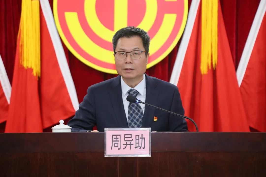 ▲五洲交通党委书记、董事长周异助出席会议并作报告。