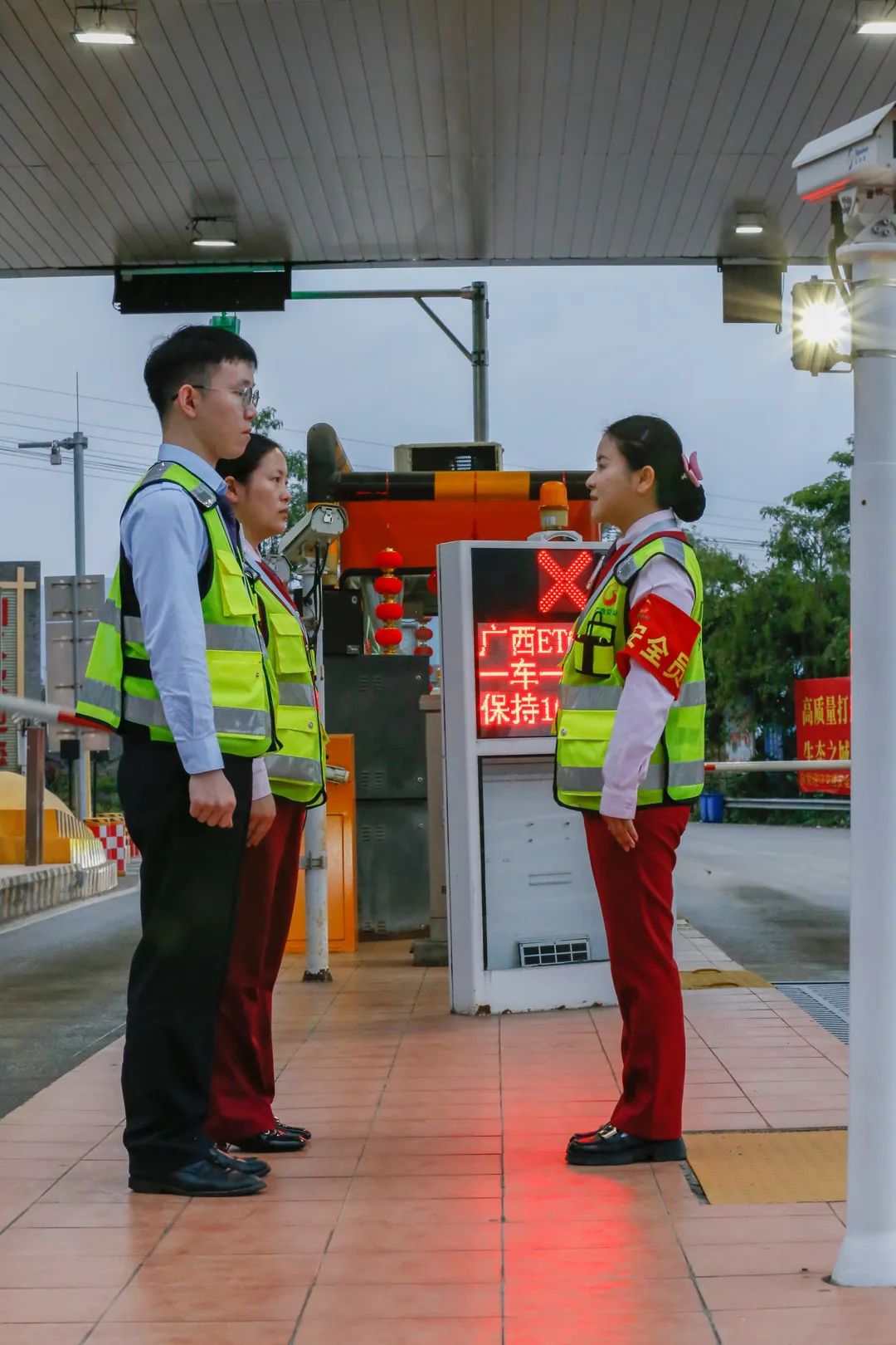 正午时分,车流慢慢散去,火凤刚准备喝口热水,此时一名司机在站前广场上停了下来,并向火凤招手起来。火凤放下茶杯立即赶了过去,司机问到:“到水汶镇是可以从这上高速吗?”“是的,您从这上高速靠左行驶,然后到岑溪东互通转茂名方向大概40分钟就可以到水汶收费站了”“谢谢,春节期间高速公路不收费你们也要值班吗?”“是的,即便是免费,也有许多特情需要处理。”“感谢你们的坚守,祝您新年快乐”“新年快乐,也祝您一路平安。”看着车辆远去,收到祝福的火凤微笑地目送着司乘远去,“每个司乘的美好、平安出行,都值得我们努力。”火凤说。
