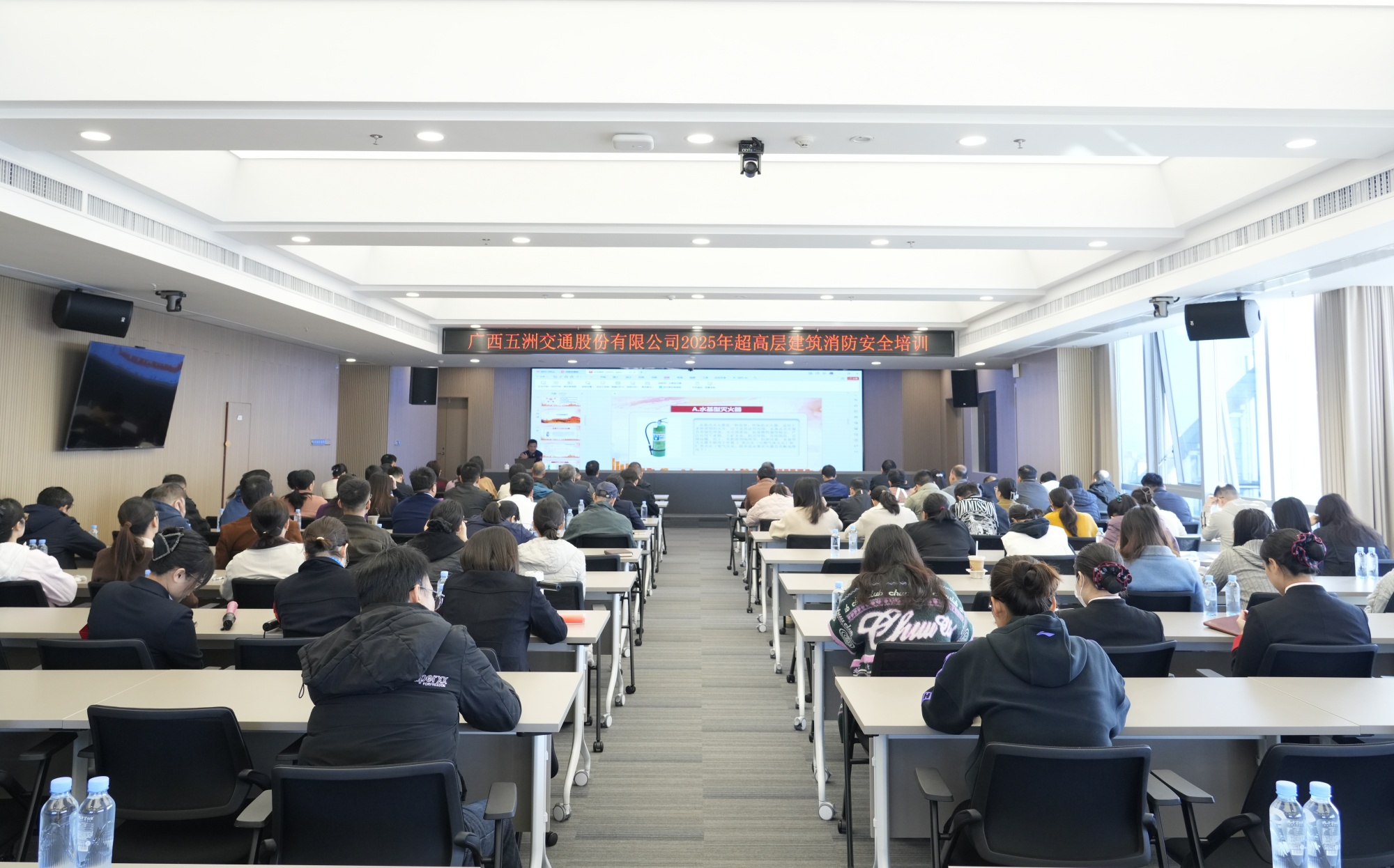 11月20日,由五洲交通主办、金桥物业公司承办的“从课堂到火场”沉浸式消防大练兵在五洲交通大厦拉开帷幕。五洲交通大厦全体单位共计128人共同参与此次大练兵。活动邀请南宁市良庆区消防救援大队陈信骥站长助理开展理论培训,重点讲解高层建筑用电用火风险与应急疏散要领。培训结束后,大厦40层模拟火情警报拉响,全体员工迅速沿预定路线疏散至28楼避难层,并在广场完成灭火器实操。此次演练实现了“脑—脚—手”全程联动,切实提升了大厦人员的自救与应急能力。