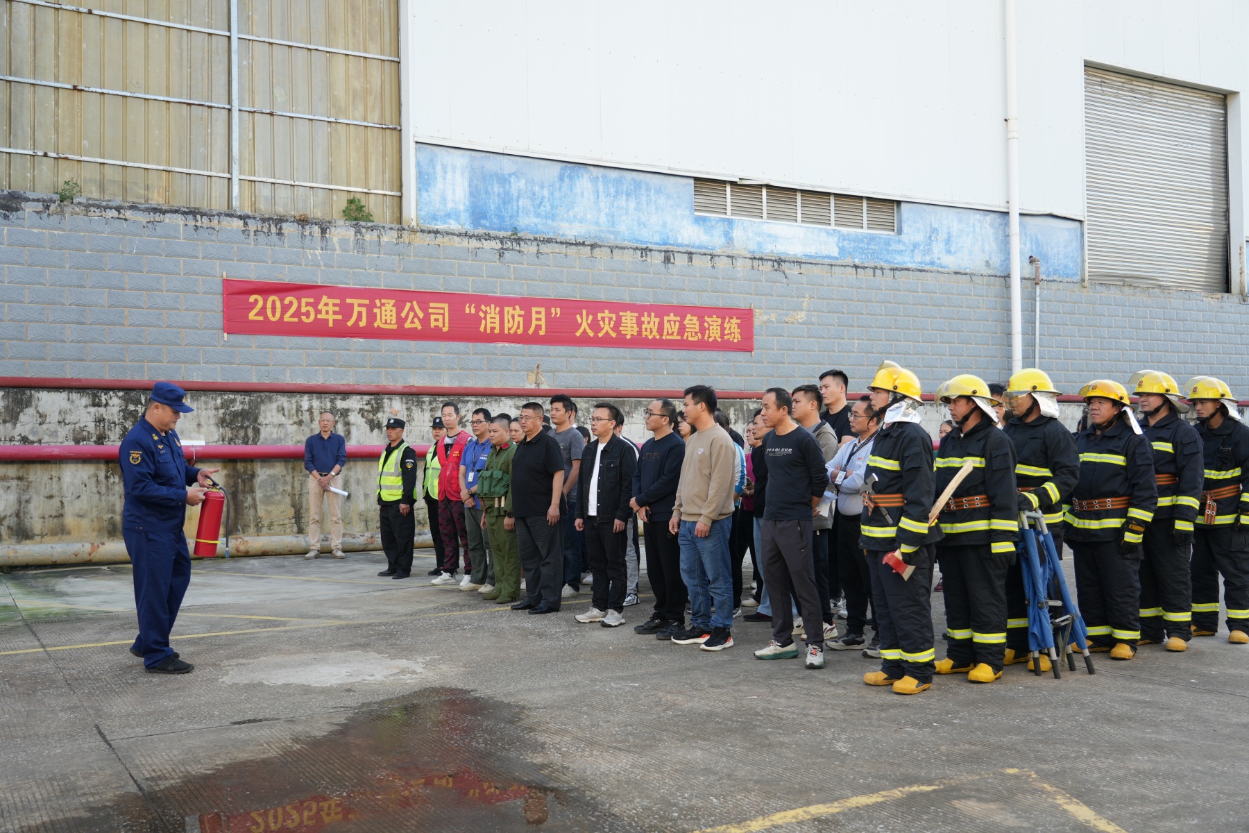 11月12日,万通公司联合“五洲同心圆”网格共建单位——凭祥市消防救援大队,在园区内成功举办了一场集“理论+实操”于一体的消防安全培训与应急演练活动。消防救援大队教导员蒋正涛现场授课,系统讲解消防知识并演示灭火器、消防水带等器材使用方法。随后开展的应急演练模拟水果交易区电气火灾,各应急小组响应迅速、配合有序,展现了高效的指挥与处置能力。演练结束后,消防官兵现场指导参训人员实操灭火,进一步巩固了实战效果。