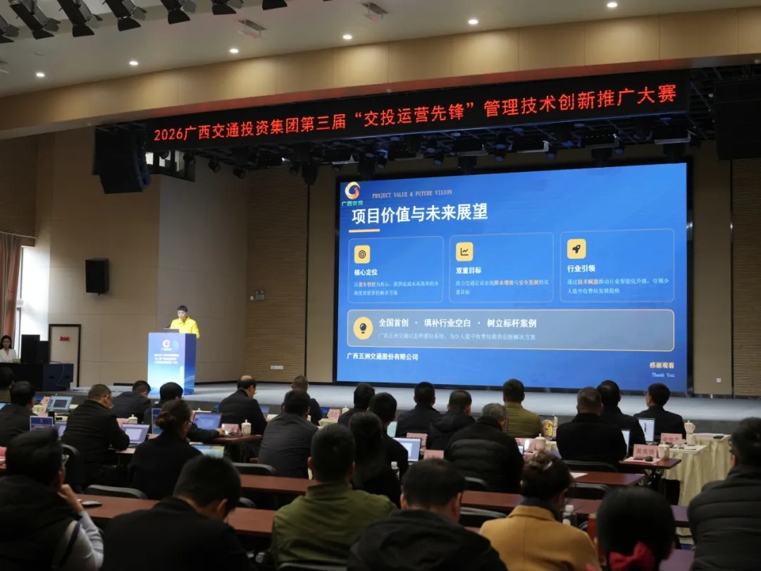 1月6日,在广西交通投资集团有限公司主办,五洲交通与桂林运营公司联合承办的第三届“交投运营先锋”管理技术创新推广大赛决赛中,五洲交通下属岑罗公司梁焱同志主导的“基于少人值守收费站的AI态势感知系统”项目,凭借突出的技术创新与运营实用价值,在机电管理板块中脱颖而出,斩获一等奖佳绩!