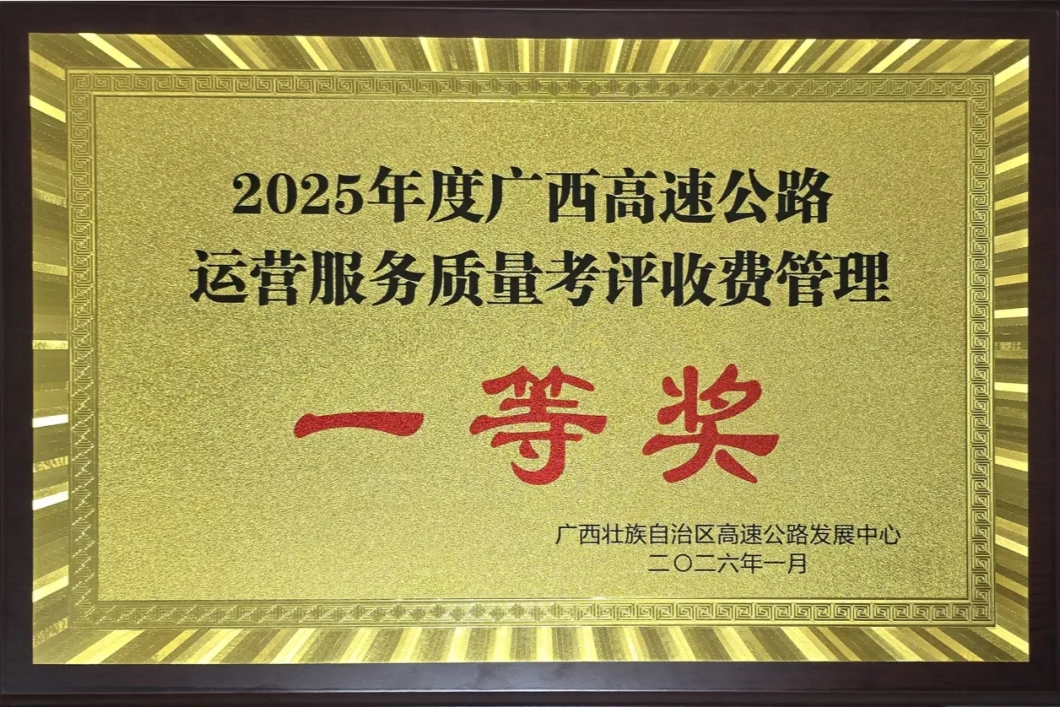 1月27日,2026年全区高速公路工作会议召开。岑罗公司在2025年度广西高速公路运营服务质量考评中,凭借在收费服务提升、智慧化运营与道路保畅等方面的扎实工作,荣获“收费管理一等奖”。